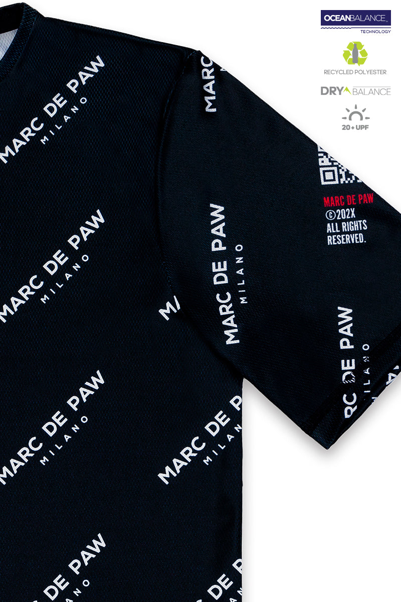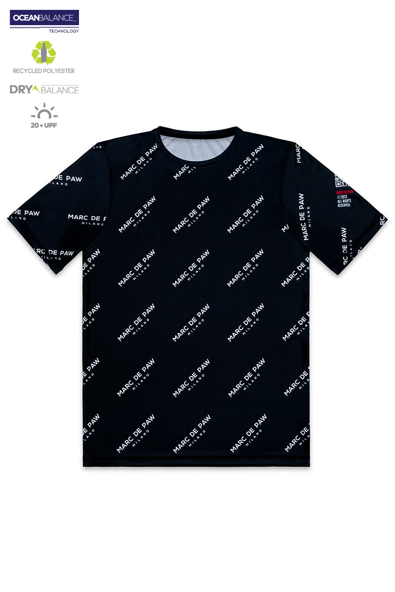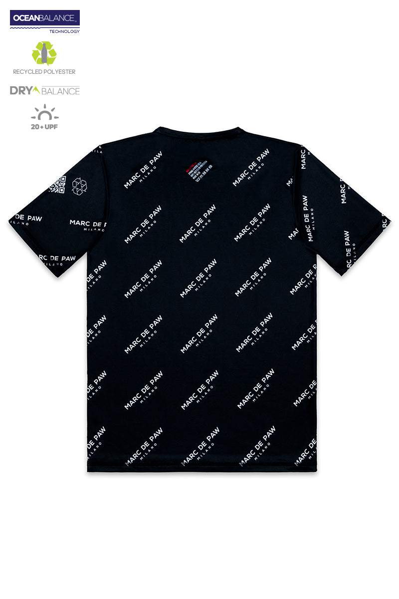 Black Tennis T-Shirt with allover white Marc De Paw logo.