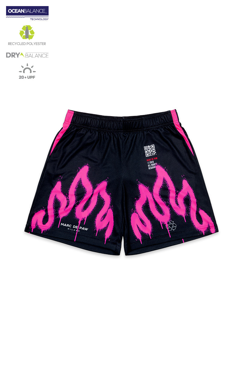 Black Tennis / Padel Shorts with neon Pink spray Flames.