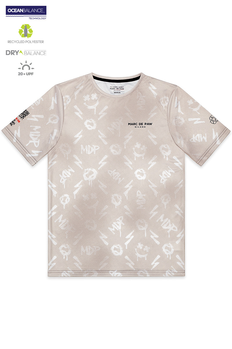Beige Tennis & Padel T-Shirt with white MDP monogram allover. Brushed style.