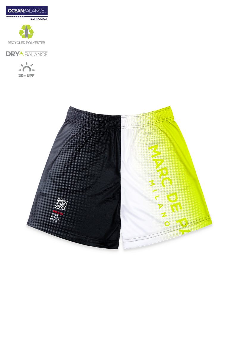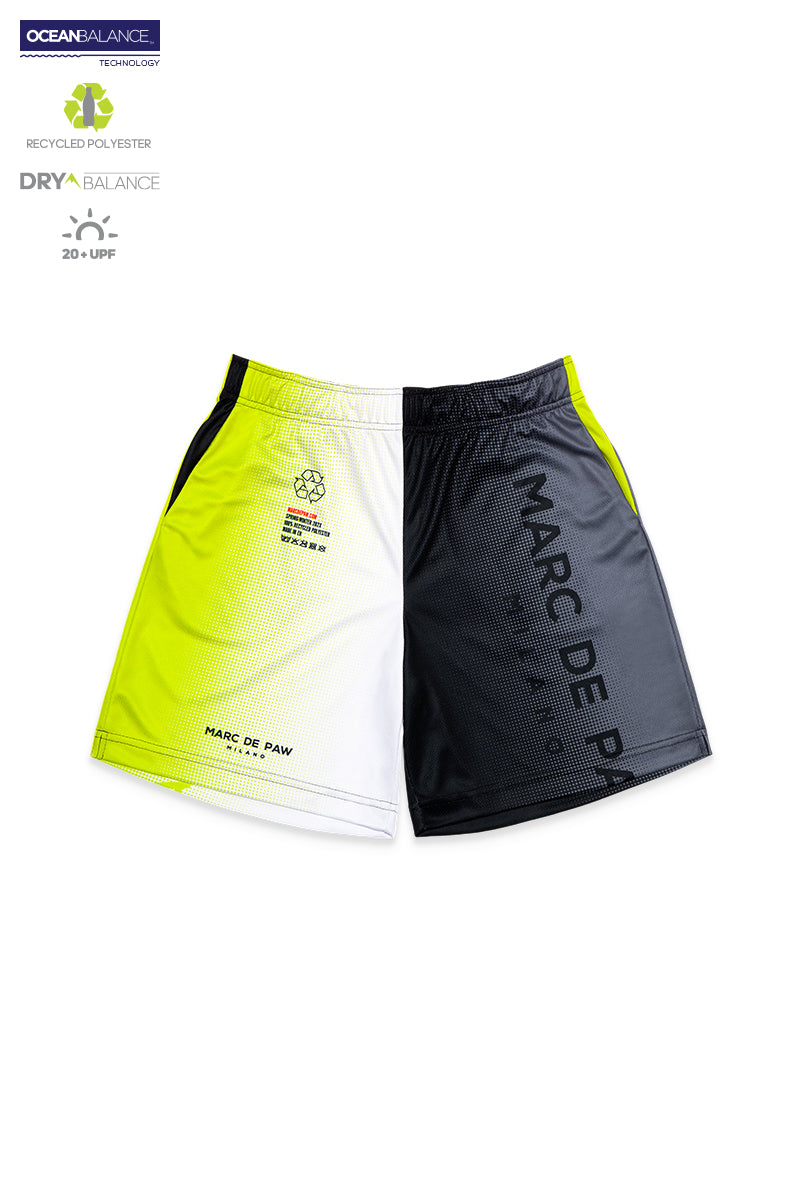 Lime-White & Black-Grey gradient Color-blocked Tennis Shorts.