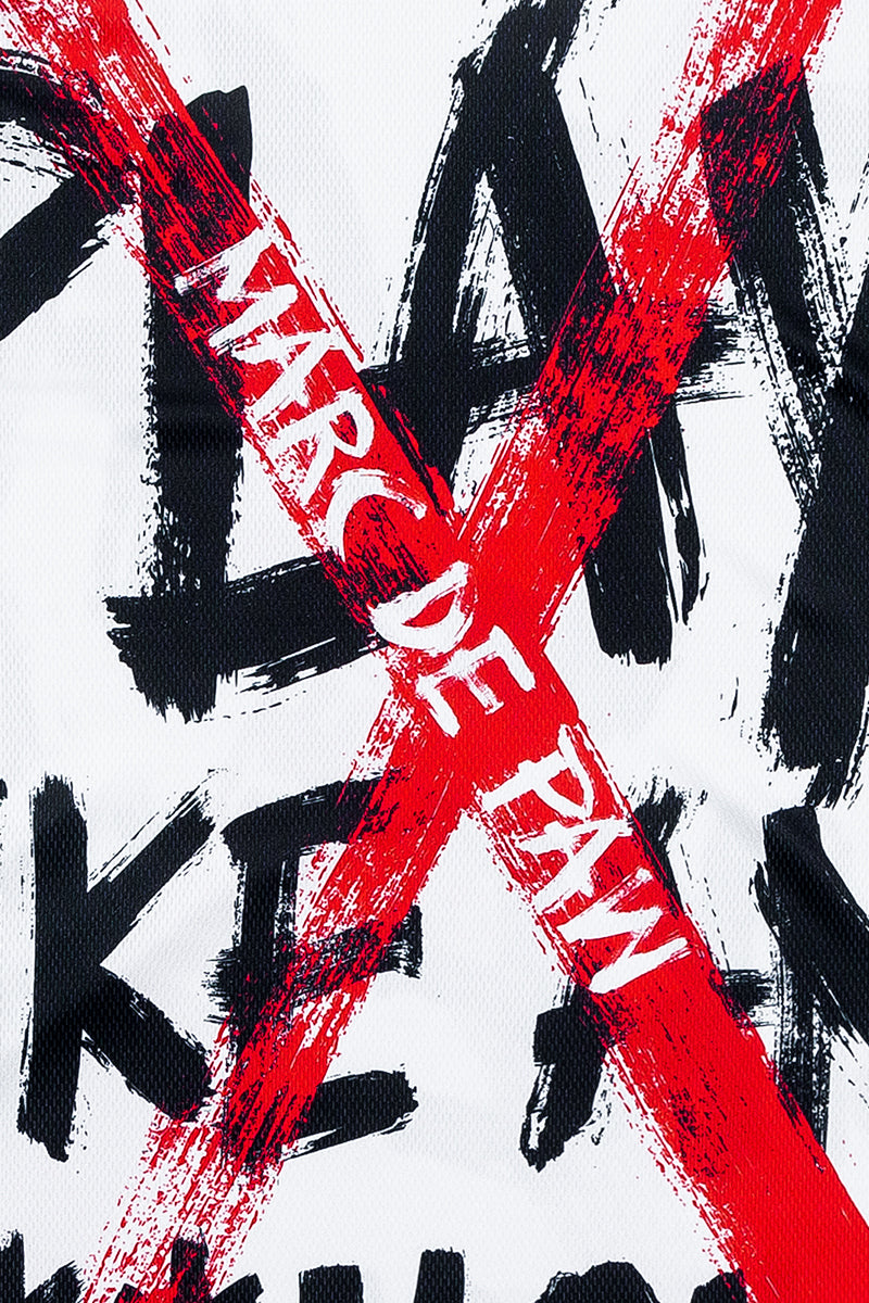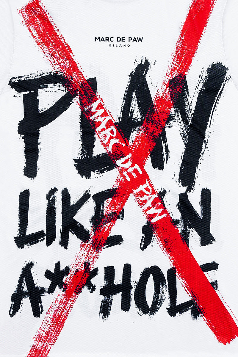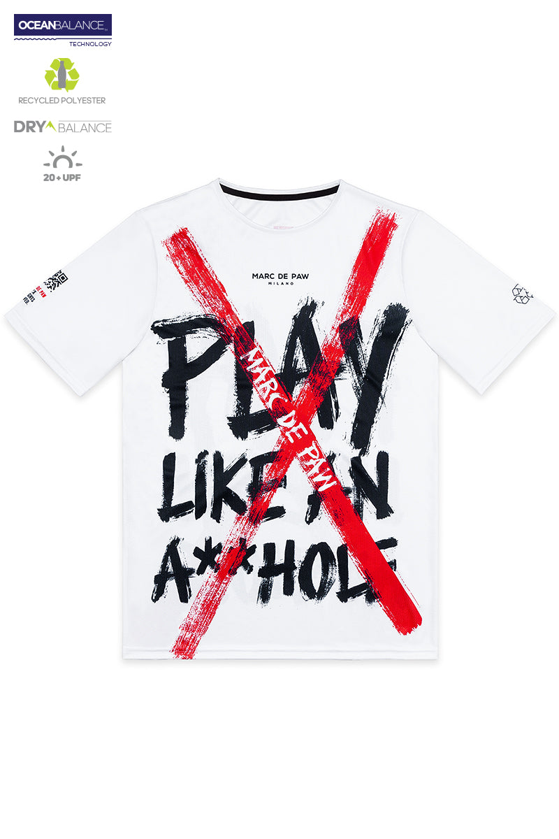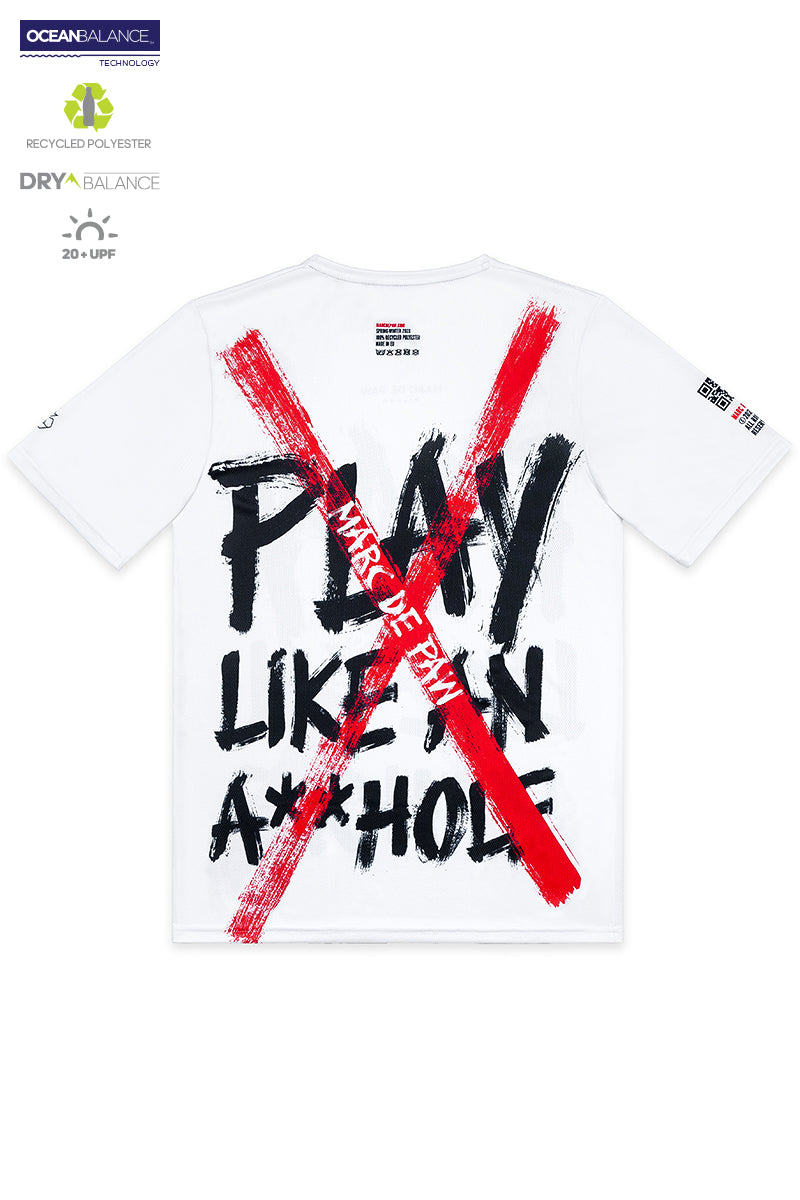 White Tennis T-Shirt with paint brushed PLAY LIKE AN A**HOLE statement.