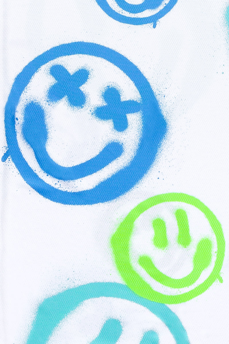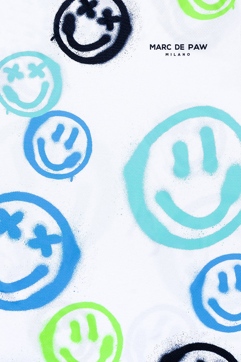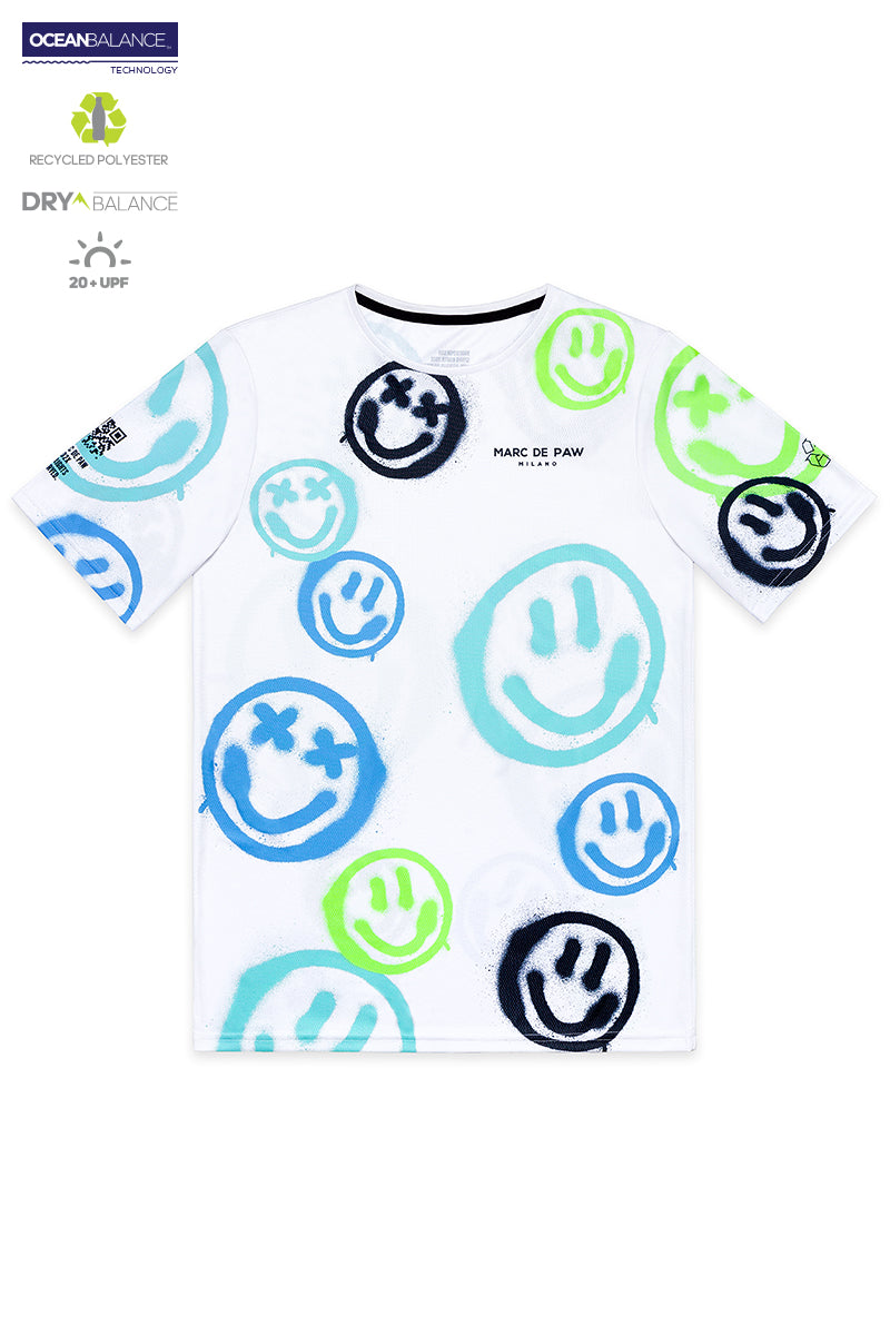 White Tennis T-Shirt with allover neon spray Smileys.