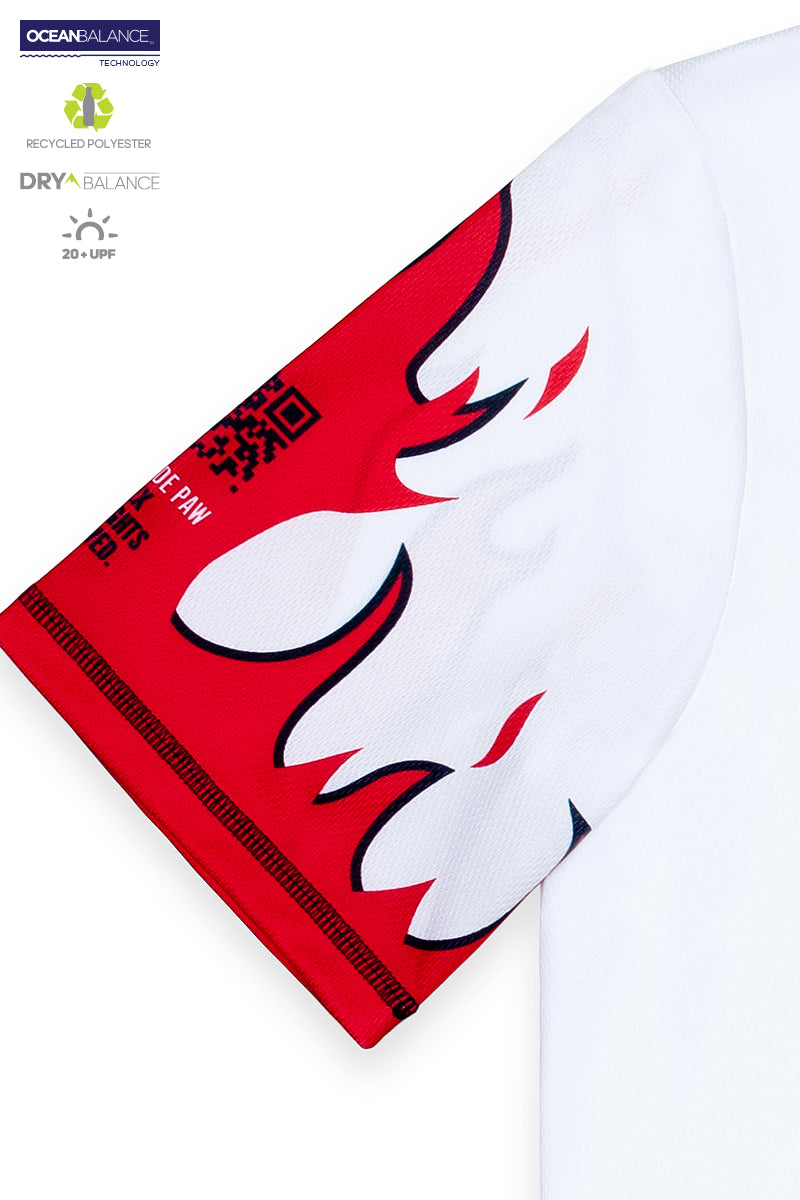 White Tennis T-Shirt with Red flames, Manga inspired mood.