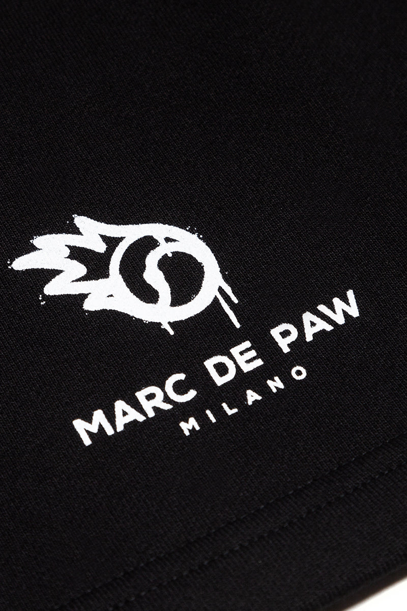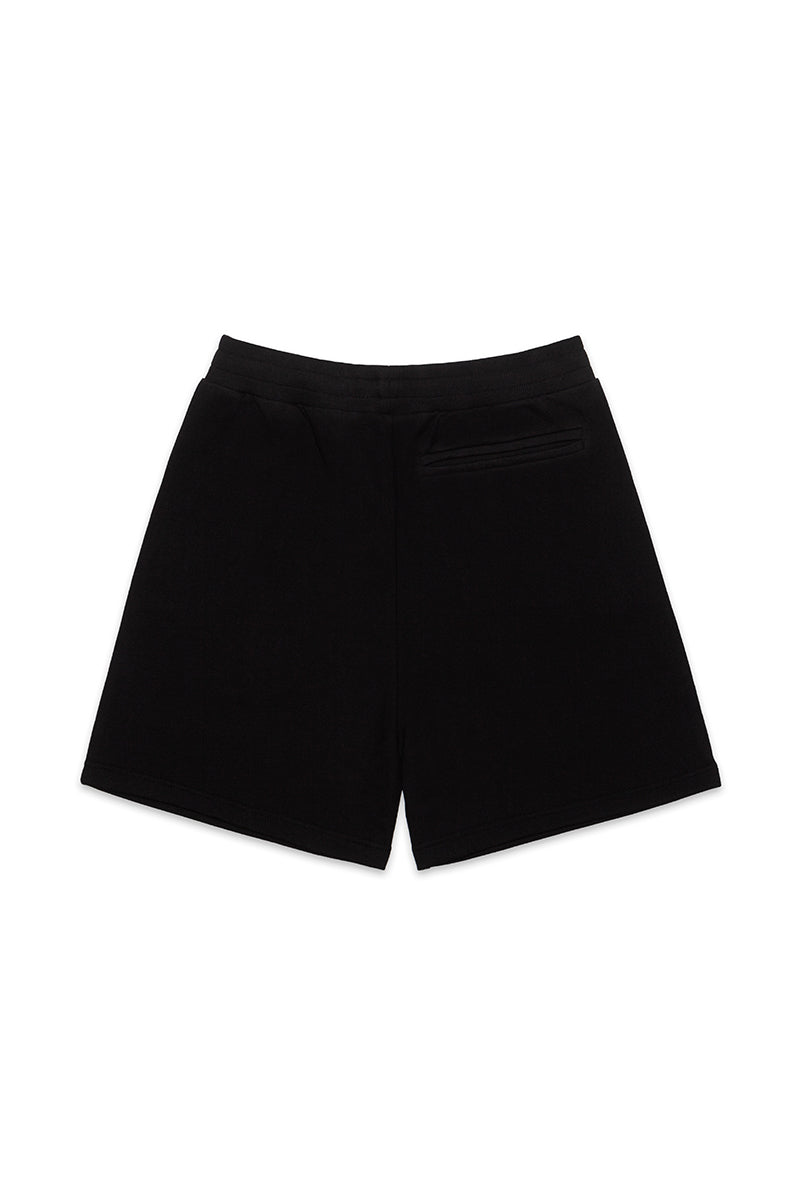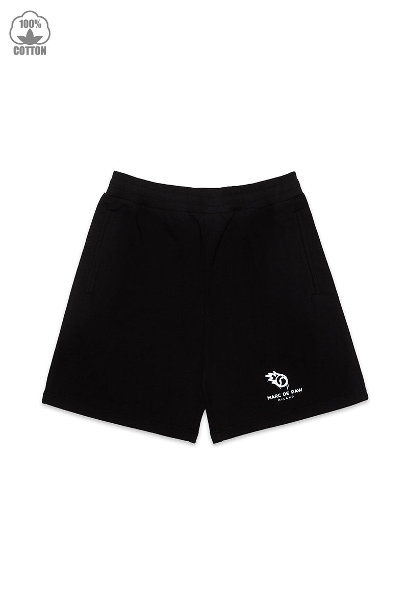 Black 100% heavy cotton Shorts with FIRE BALL logo silkscreen printed at front.