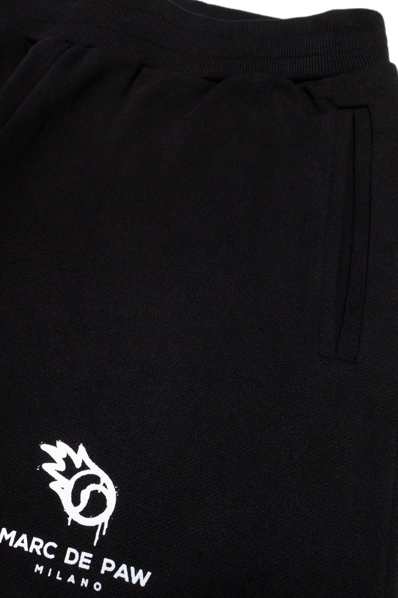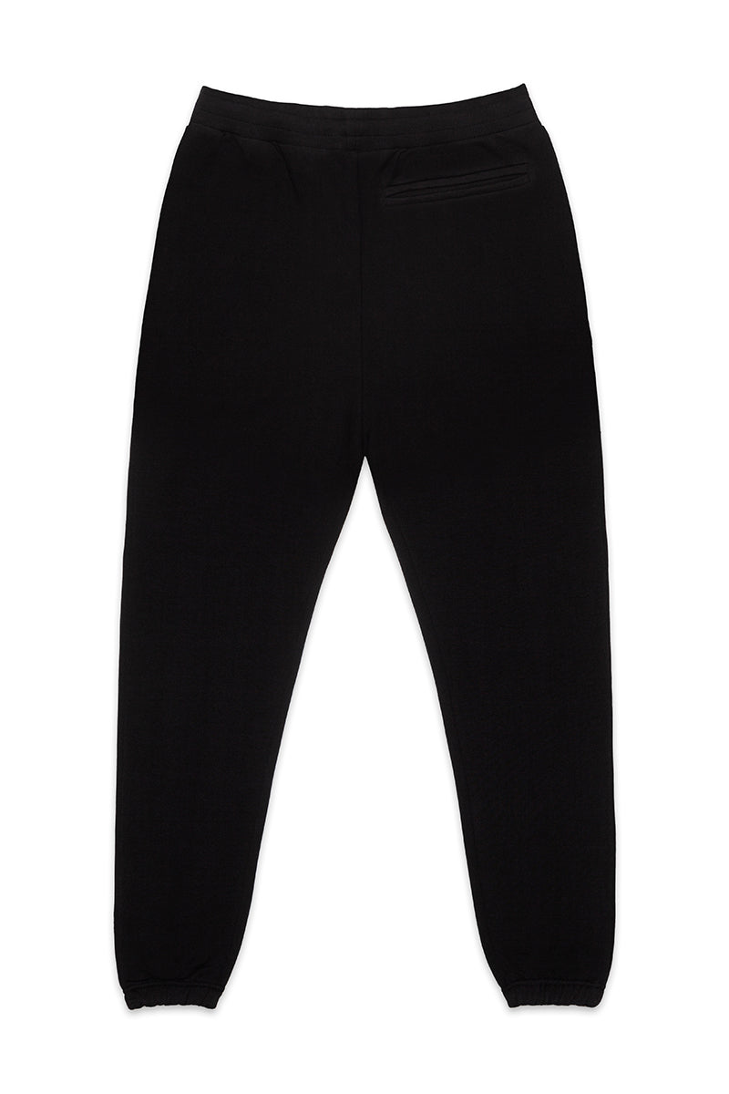 Black 100% heavy cotton Sweatpants with FIRE BALL logo silkscreen printed at front.