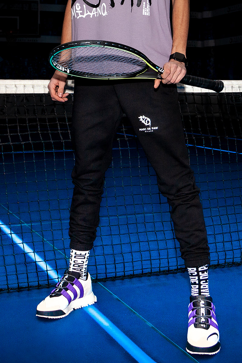 Classic Slim fitting with elastic waist and ankles, side double pockets, back pocket, hidden drawcord, lint-free inside.