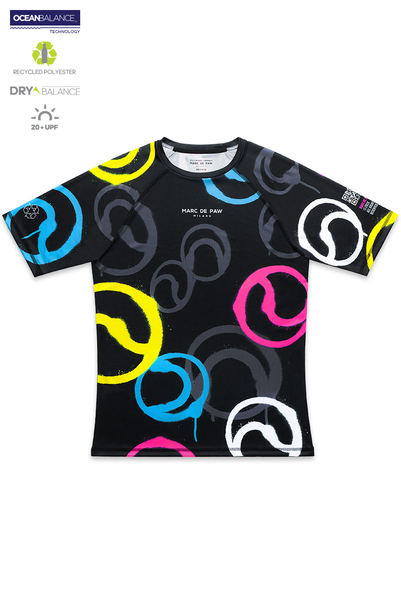 Black T-Shirt for Tennis, Padel & Pickleball with multicolored Spray balls