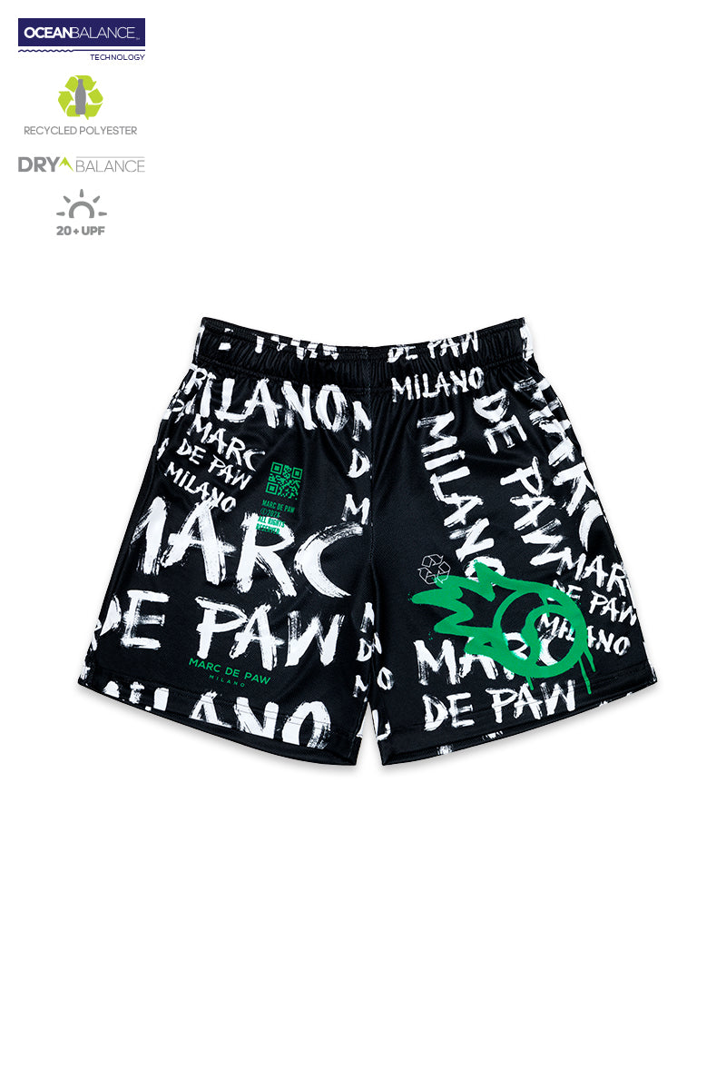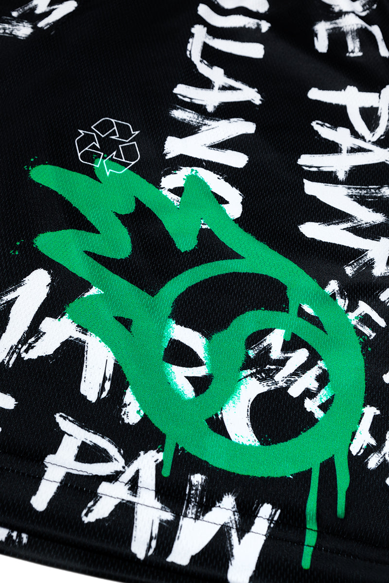 Black Tennis, Padel & Pickleball Shorts with white and green Brush stroke and Spray graffiti graphics.