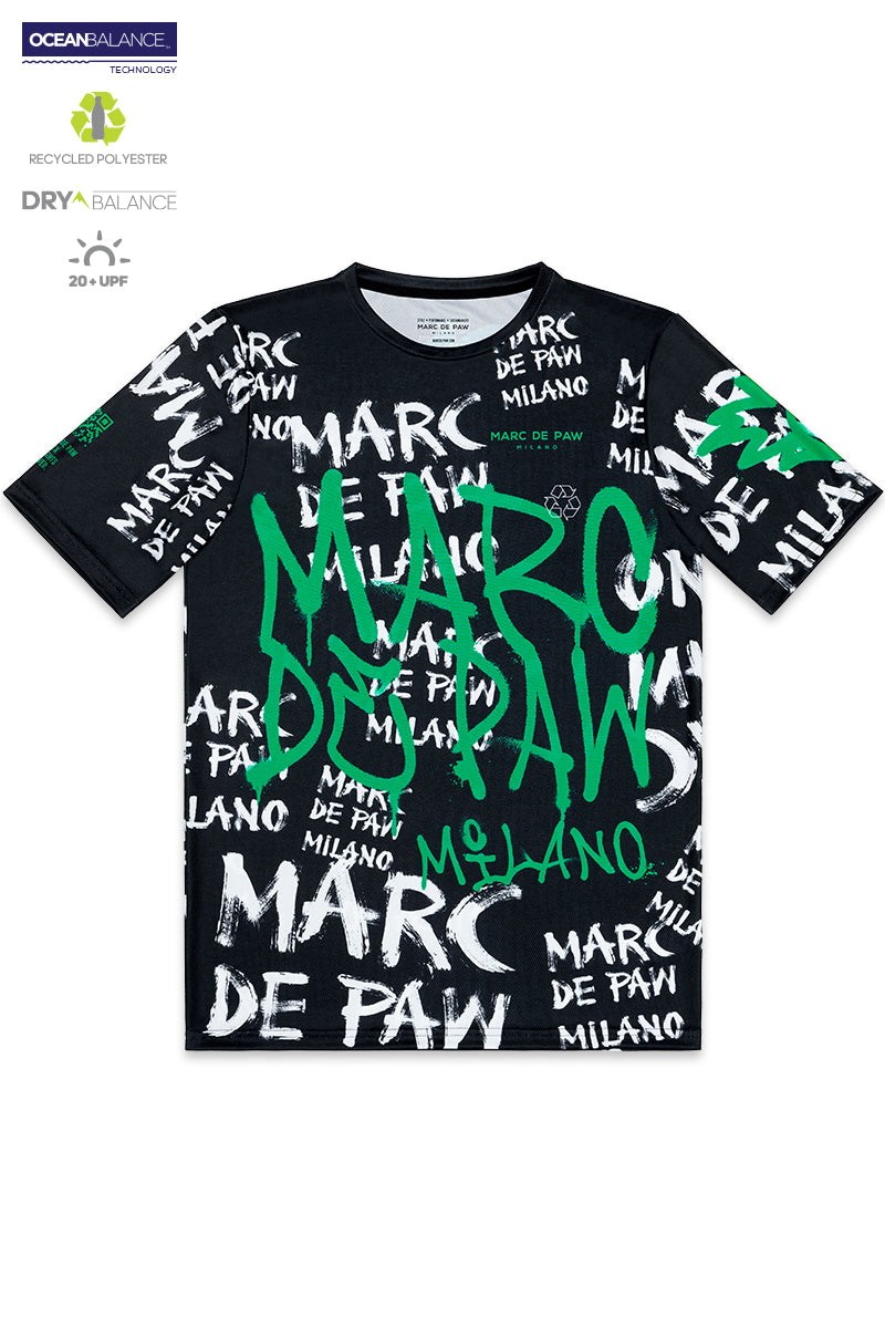 Black Tennis, Padel & Pickleball T-Shirt with white and green Brush stroke and Spray graffiti graphics. Regular fit.