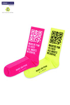 Neon Yellow & Neon Pink Recycled active Socks with MARC DE PAW QR code (2 pairs)